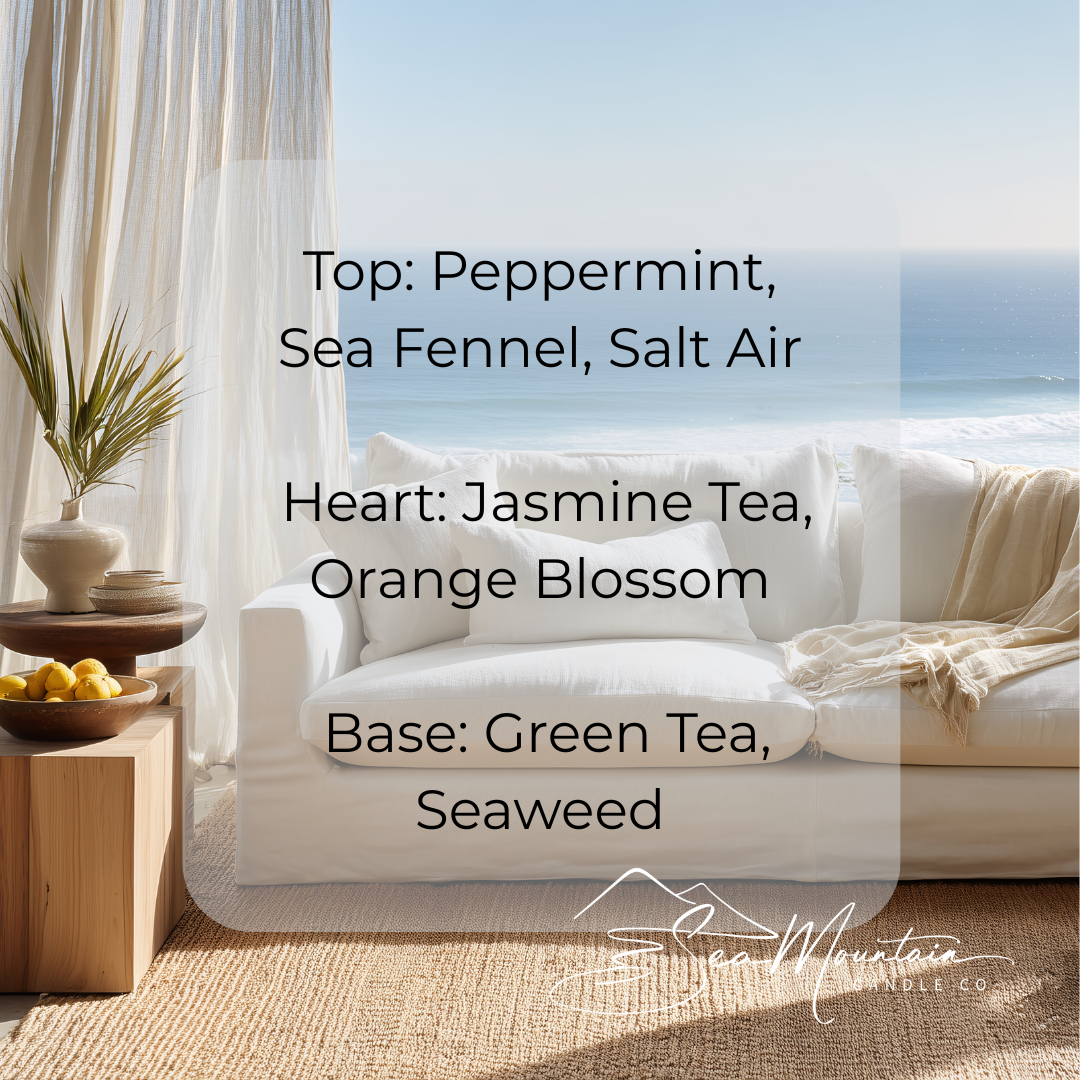 Top: Sea Fennel, Baobab Sea Oil, Young Peppermint, Salt Air, Aloe Vera Leaf Juice, Bergamot, Jasmine Tea, Steeped Rose